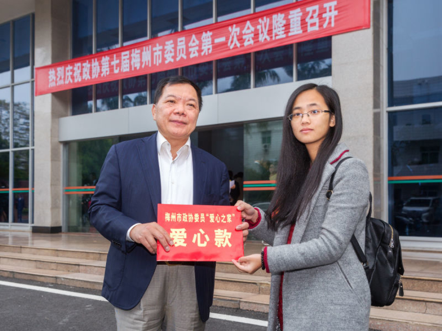2017年,劉海云代表梅州市“政協(xié)委員愛心之家”委托《梅州日報》向當?shù)乩щy群眾轉交愛心款
