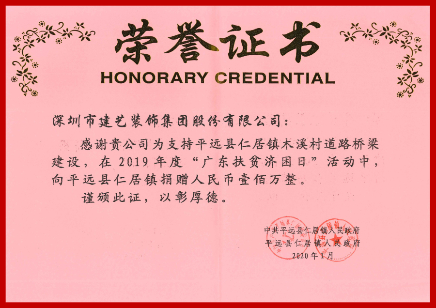 一直以來,建藝集團、建藝控股始終懷著感恩的心做企業(yè),服務社會,回報社會。多年來積極投入社會各種慈善活動,先后捐款5685萬元:其中,廣東興寧水口鎮(zhèn)洋新村老人活動中心新農(nóng)村建設共捐贈900多萬元;廣東平遠縣扶貧助學捐助270萬元;廣東興寧教育強市捐助200萬元;廣東興寧公益慈善共捐630萬元。