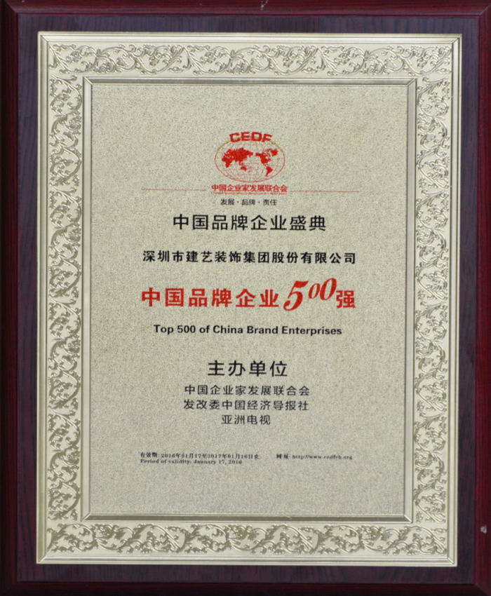 建藝集團(tuán)獲評(píng)為“中國(guó)品牌企業(yè)500強(qiáng)”
