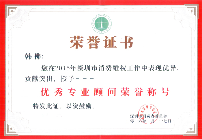 會議最后對在2015年消費維權工作中表現突出的7位專業(yè)顧問進行表彰,建藝集團工程總監(jiān)韓佛獲“優(yōu)秀專業(yè)顧問”榮譽稱號,頒獎儀式后會議順利結束。
