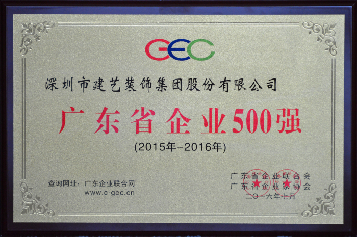 建藝集團榮獲的“廣東省企業(yè)500強”獎牌