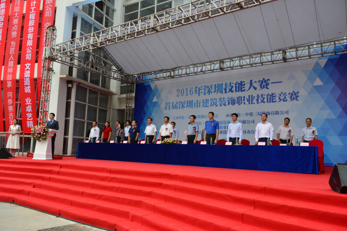 11月19日,由深圳市裝飾行業(yè)協(xié)會主辦、以“傳承工匠精神,打造深圳質(zhì)量”為主題的“2016年深圳技能大賽暨首屆深圳市建筑裝飾職業(yè)技能競賽”決賽在廣東新安職業(yè)技術(shù)學(xué)院舉行。深圳市社會組織管理局副局長孫景明、深裝協(xié)高剛會長等嘉賓,以及來自深圳市建筑裝飾行業(yè)24家企業(yè)的80名技術(shù)工人參加了本次決賽。建藝集團工程管理中心韓佛總監(jiān)作為嘉賓出席,陳計明、郭勇剛等四位員工作為選手參加決賽。