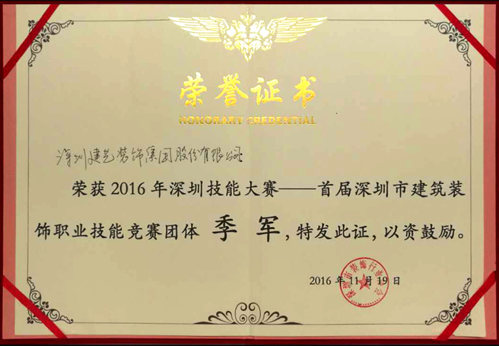 此次“2016年深圳技能大賽暨首屆深圳市建筑裝飾職業(yè)技能競賽”,是深圳裝飾行業(yè)和企業(yè)、員工的一次盛會。建藝團隊能夠載譽而歸,是集團“以德為先,誠信為本,構(gòu)筑精品為目標”的企業(yè)宗旨的一次展現(xiàn),也是集團員工努力錘煉工作技能、貫徹“工匠精神”的體現(xiàn)。相信我們會憑借自己的精湛技藝,在未來為社會奉獻更多的精品項目。
