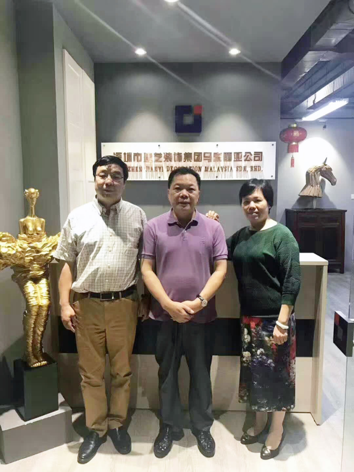 劉海云董事長、顏如珍副總裁與馬來西亞公司負(fù)責(zé)人、總裁助理兼海外事業(yè)部總經(jīng)理徐明(左一)在建藝集團(tuán)馬來西亞公司合影