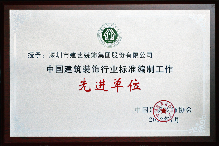 熱烈祝賀建藝集團(tuán)榮獲“中國(guó)建筑裝飾行業(yè)標(biāo)準(zhǔn)編制工作先進(jìn)單位”稱號(hào)