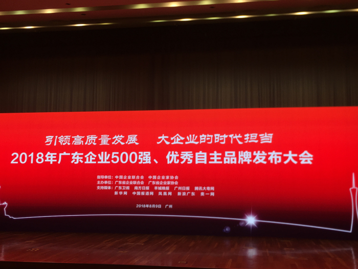 8月9日上午,以“引領(lǐng)高質(zhì)量發(fā)展,大企業(yè)的時(shí)代擔(dān)當(dāng)”為主題的2018年“廣東企業(yè)500強(qiáng)、優(yōu)秀自主品牌發(fā)布大會(huì)”在廣州舉行。廣東省副省長(zhǎng)陳良賢出席大會(huì)并向入圍廣東企業(yè)500強(qiáng)及優(yōu)秀自主品牌的企業(yè)表示祝賀。
