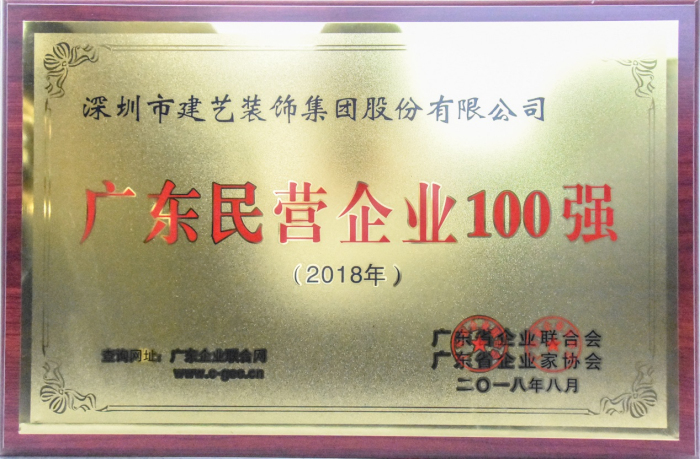 建藝集團(tuán)榮獲的廣東民營(yíng)企業(yè)100強(qiáng)獎(jiǎng)牌