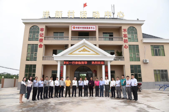 紅荔愛心團隊成員在劉海云夫婦出資興建的洋新村活動中心前合影