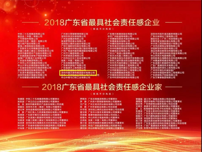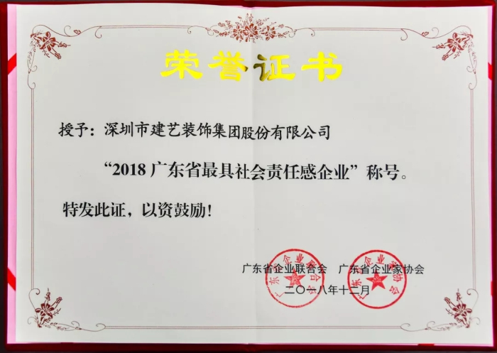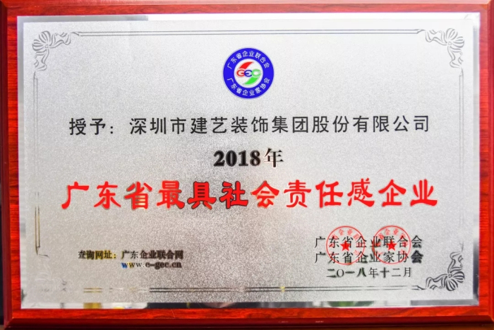建藝集團榮登“2018廣東省最具社會責任感企業(yè)”光榮榜