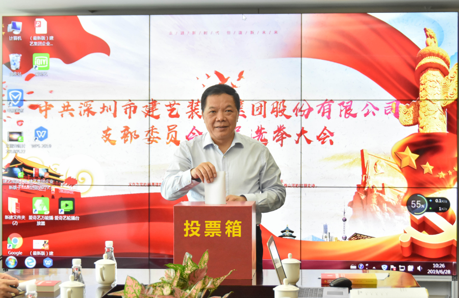 日前,建藝集團“紀念中國共產(chǎn)黨建黨98周年暨集團黨支部換屆選舉大會”在總部會議室舉行。大會總結(jié)了上一屆支部委員會工作情況及集團黨建工作成績,并由新一屆支部委員會部署安排下一階段工作。集團黨支部書記劉海云出席大會并投票。集團黨支部副書記陳景輝、支部委員、黨員代表及會務(wù)工作人員等近40人參加大會。