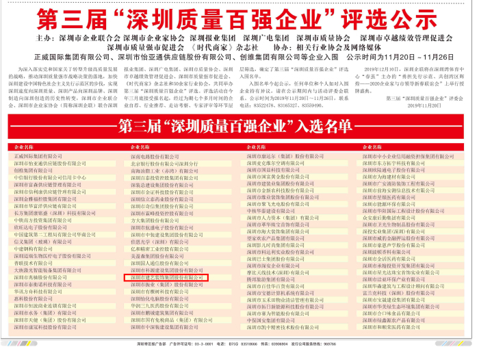 【藝動(dòng)態(tài)】第三屆“深圳質(zhì)量百?gòu)?qiáng)企業(yè)”評(píng)選公示:建藝集團(tuán)再次榮譽(yù)入選