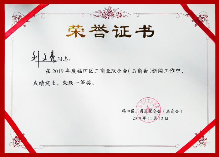 培訓(xùn)后,區(qū)工商聯(lián)領(lǐng)導(dǎo)對(duì)2019年度福田區(qū)工商聯(lián)(總商會(huì))優(yōu)秀信息員進(jìn)行表彰并頒發(fā)了榮譽(yù)證書。建藝集團(tuán)榮獲福田區(qū)工商聯(lián)(總商會(huì))新聞工作第一名,這是建藝集團(tuán)連續(xù)第四年蟬聯(lián)第一。