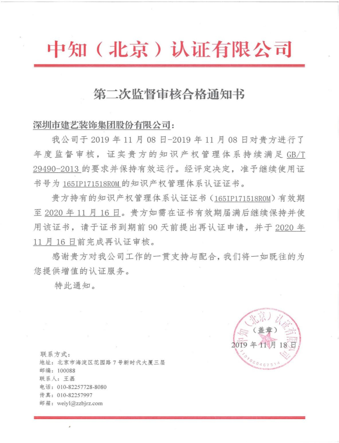 【藝動(dòng)態(tài)】建藝集團(tuán)通過《知識(shí)產(chǎn)權(quán)管理體系》年審