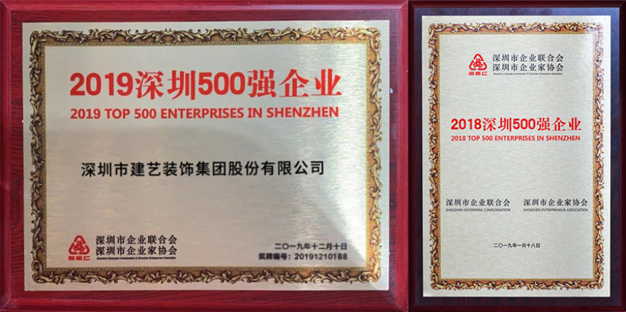 建藝集團(tuán)——深圳500強(qiáng)企業(yè)(2018、2019)