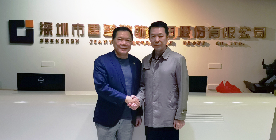 劉海云主席與馮文山董事、總經(jīng)理(右)在建藝總部大廈合影