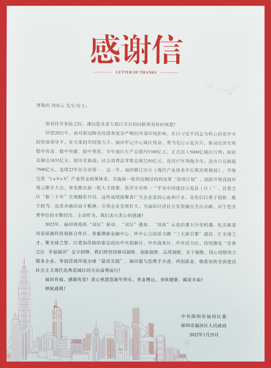 就在農(nóng)歷虎年春節(jié)即將到來之際,1月28日下午,福田區(qū)委、區(qū)政府特別為區(qū)上市企業(yè)——建藝集團(tuán)贈(zèng)送了一份極具地方特色且洋溢著濃濃關(guān)懷溫情的特殊年禮——大盆菜及一封感謝信。以感謝在過去的一年,建藝集團(tuán)為福田經(jīng)濟(jì)社會(huì)發(fā)展所做出的杰出貢獻(xiàn),并向集團(tuán)創(chuàng)始人劉海云先生致以新春?jiǎn)柡颉?/span>