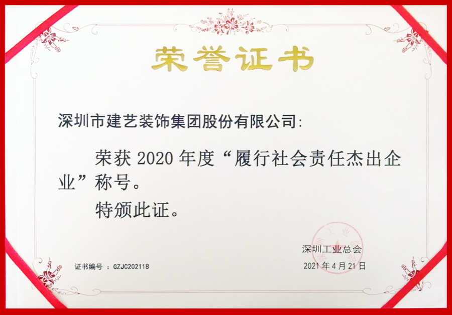 【建藝動(dòng)態(tài)】履責(zé)任·踐使命·助發(fā)展——建藝集團(tuán)獲評(píng)2020年度“履行社會(huì)責(zé)任杰出企業(yè)”稱號(hào)