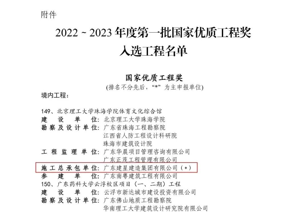 喜訊丨建藝集團(tuán)旗下建星集團(tuán)承建項(xiàng)目榮獲國家優(yōu)質(zhì)工程獎