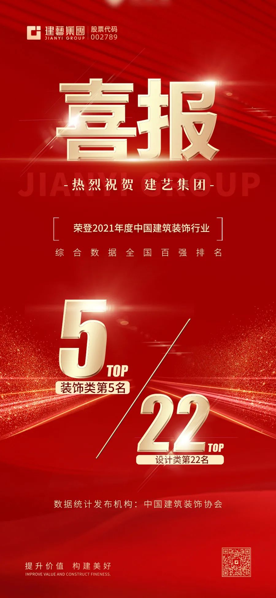 深圳市建藝裝飾集團(tuán)股份有限公司(下稱建藝集團(tuán))憑借在行業(yè)領(lǐng)域的優(yōu)異表現(xiàn),連續(xù)榮登中國建筑裝飾行業(yè)百強(qiáng)榜,位列中國建筑裝飾行業(yè)綜合排名裝飾類第5名和設(shè)計(jì)類第22名!