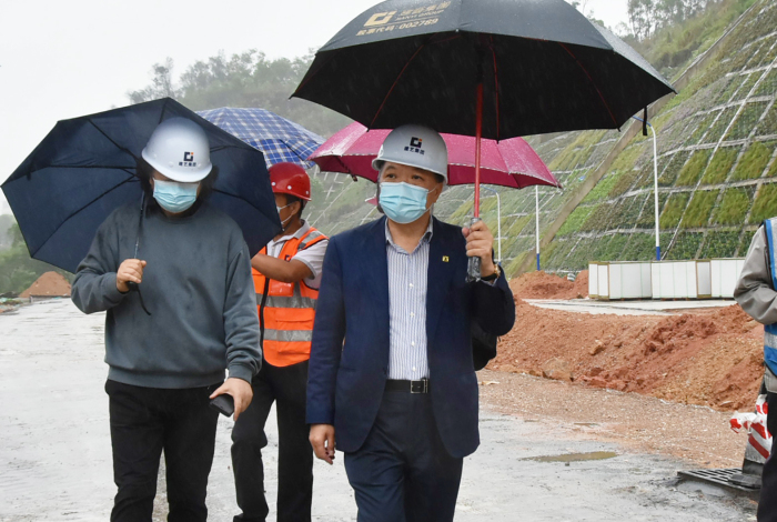 建藝集團(tuán)董事會(huì)主席劉海云一行冒雨親臨下坪場(chǎng)市政重點(diǎn)生態(tài)修復(fù)園建項(xiàng)目檢查工作
