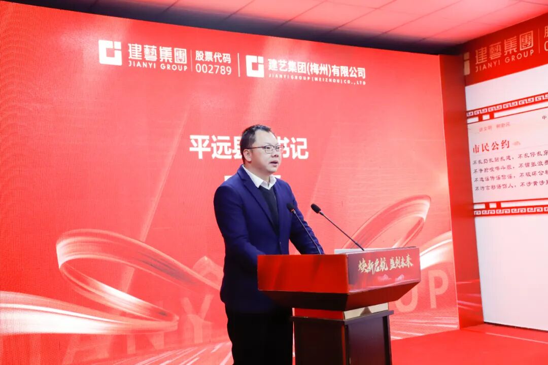 平遠(yuǎn)縣委書記周小勇同志在儀式上發(fā)表講話。他指出,近年來平遠(yuǎn)縣充分發(fā)揮資源稟賦優(yōu)勢,大力推進(jìn)產(chǎn)業(yè)園區(qū)建設(shè),實(shí)施工業(yè)倍增升級行動(dòng),打造特色產(chǎn)業(yè)集群,全力推動(dòng)縣域經(jīng)濟(jì)、鎮(zhèn)域?qū)嵙痛寮壔盍Φ娜嫣嵘?/span>希望建藝集團(tuán)(梅州)有限公司充分發(fā)揮國企、上市公司的平臺及資源優(yōu)勢,不斷做大總量、做強(qiáng)規(guī)模。強(qiáng)化專業(yè)技術(shù)優(yōu)勢,堅(jiān)定走市場化道路,形成可持續(xù)、高質(zhì)量的發(fā)展動(dòng)能,煥新啟航,盛創(chuàng)未來。