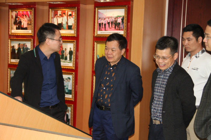劉海云董事長(左二)一行參觀港龍控股集團(tuán)展廳
