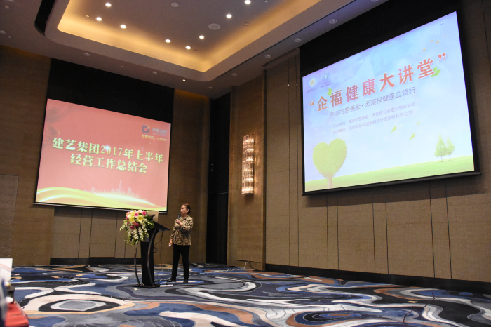 在會議期間,建藝集團戰(zhàn)略合作伙伴、兄弟公司——深圳天基權(quán)健康科技集團股份有限公司也派出代表出席會議,并由醫(yī)學(xué)專家姜麗婭教授為建藝同仁帶來一場直觀而生動的健康講座,贏得與會領(lǐng)導(dǎo)的熱情掌聲。