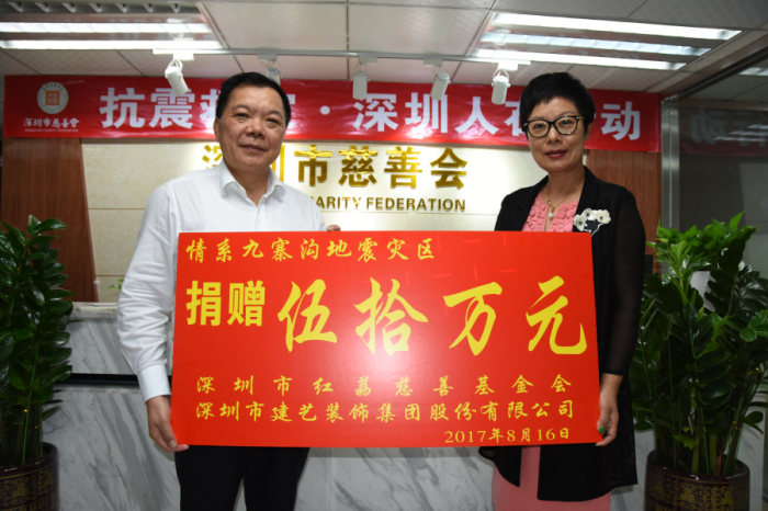 本著“一方有難、八方支援”的強烈責任心與使命感,在地震災情發(fā)生后,建藝集團董事長兼總裁、深圳市紅荔慈善基金會“榮譽會長”劉海云第一時間詳細了解災區(qū)受災情況并積極行動。8月18日,通過深圳市慈善會,劉董代表建藝集團及深圳市紅荔慈善基金會向九寨溝災區(qū)捐贈50萬元人民幣,用于解決當?shù)厝罕姷臑暮蟀仓眉盎A設施恢復與重建等,以實際行動為災區(qū)人民重建家園盡一份力。