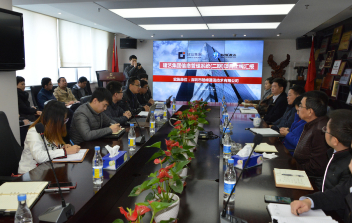 近日,建藝集團(tuán)聯(lián)合深圳市皓峰通訊技術(shù)有限公司(皓峰通訊)在建藝總部大廈19層會(huì)議室舉辦“信息管理系統(tǒng)(二期)項(xiàng)目上線會(huì)”。劉海云董事長(zhǎng)等集團(tuán)高管出席會(huì)議,信息化項(xiàng)目方案解決商、皓峰通訊毛孝鹍總經(jīng)理帶領(lǐng)項(xiàng)目團(tuán)隊(duì)參加會(huì)議并進(jìn)行詳細(xì)匯報(bào)。