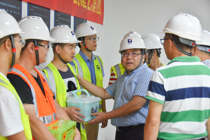慰問活動期間,深圳市建設(shè)工會主席王貴斌、建藝集團工會主席溫良茂、建藝集團工程管理中心呂忠新總等一行來到項目工地,實地查看項目建設(shè)進展情況。會上,在聽取了項目工程情況及一線員工安全生產(chǎn)等情況的匯報后,王貴斌主席著重強調(diào)了在保證“ 安全生產(chǎn)“的前提下完成施工,并把”工匠精神“發(fā)揚光大。