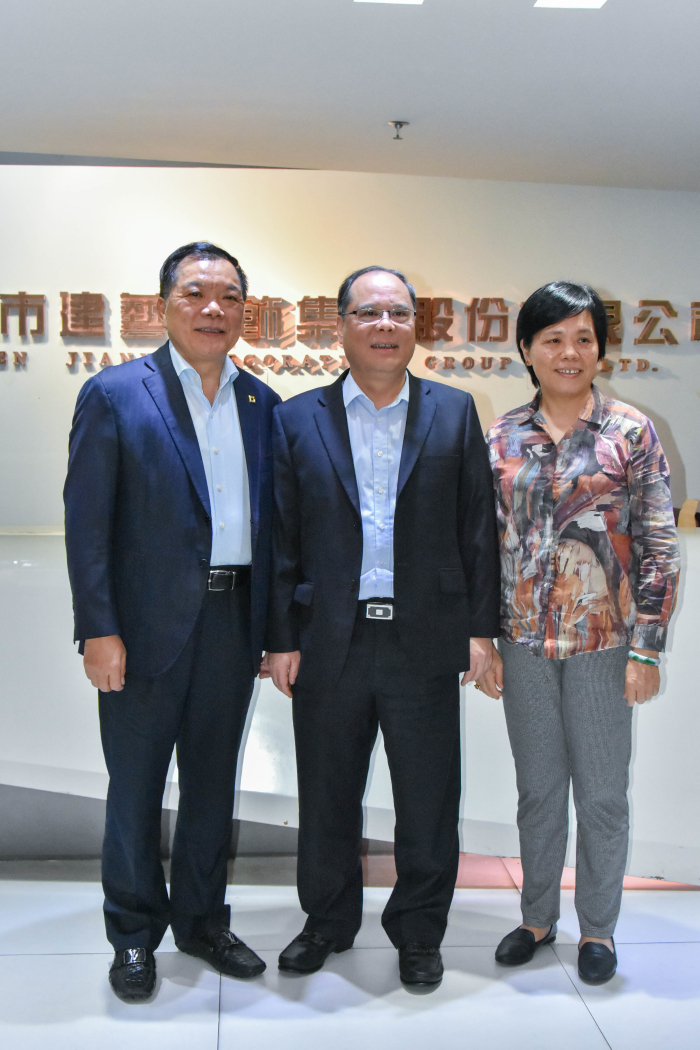 建藝集團(tuán)、建藝控股董事會主席劉海云及集團(tuán)董事、副總裁顏如珍與余書記合影留念