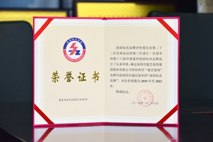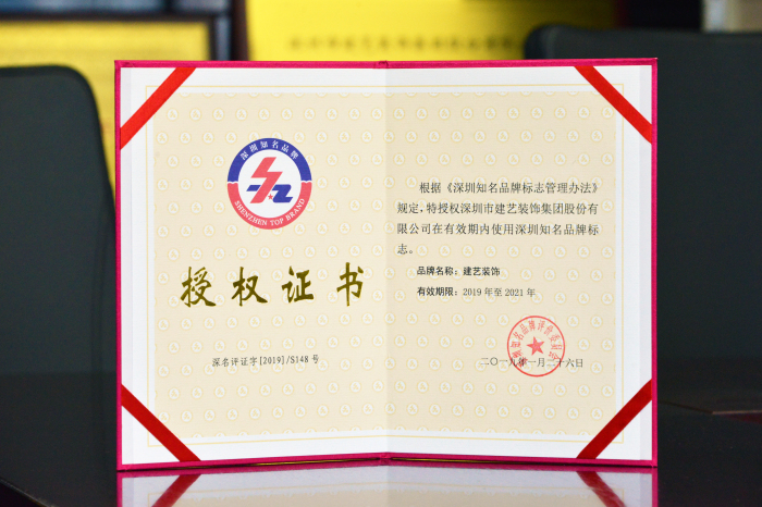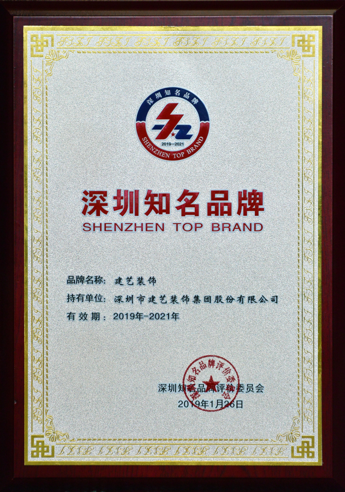 建藝集團(tuán)蟬聯(lián)“深圳知名品牌”榮譽(yù)稱號(hào)