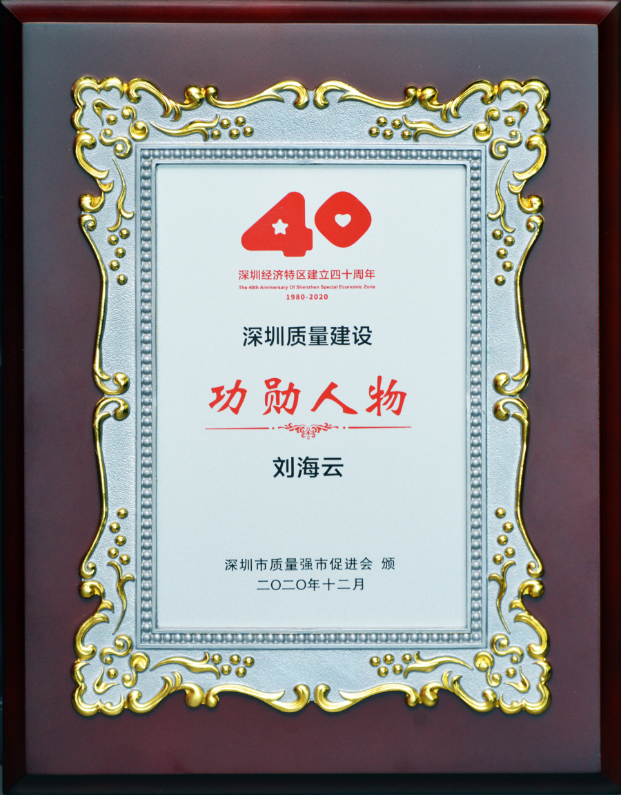 深圳經(jīng)濟(jì)特區(qū)建立40周年深圳質(zhì)量建設(shè)功勛人物——?jiǎng)⒑T?/span>